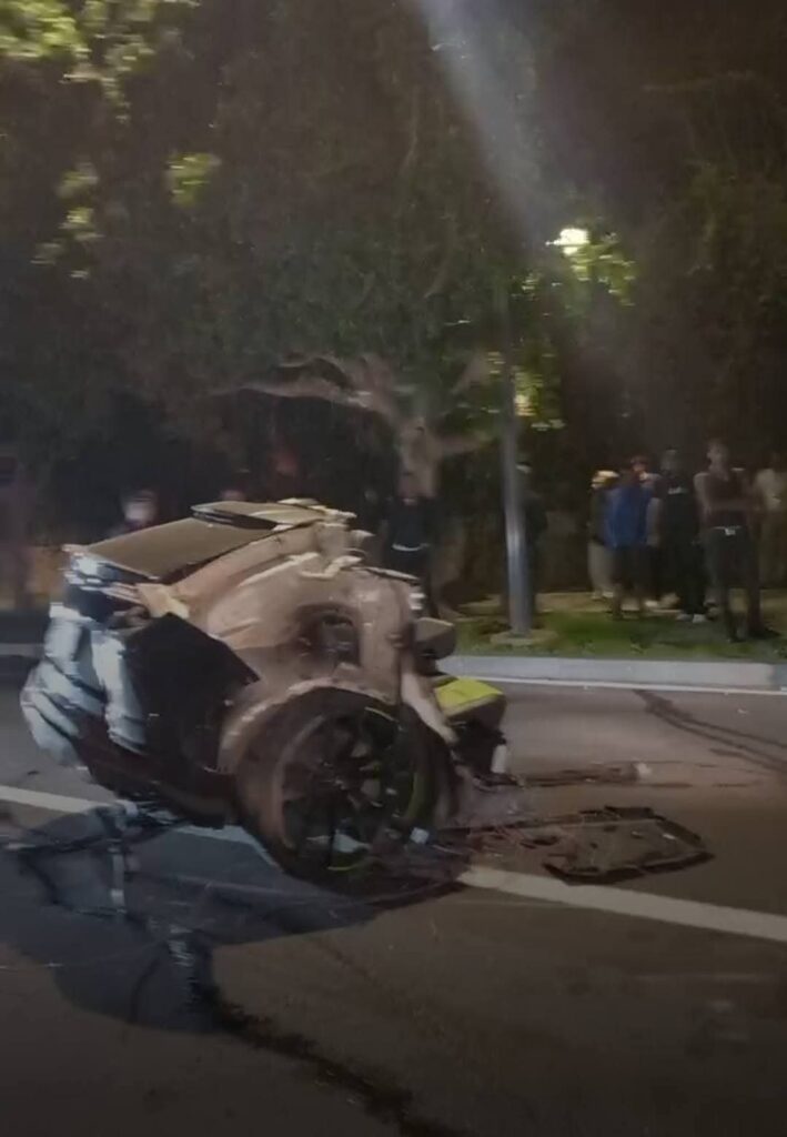 الاصطدام كان عنيفاً إلى درجة انشطار السيارة( #لومبرݣيني) إلى نصفين، في مشهد مروّع صدم كل من عاين الواقعة.