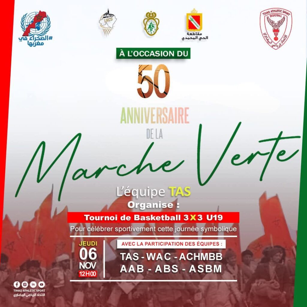 بمناسبة الذكرى الخمسين للمسيرة الخضراء المظفرة، ينظم فريق الاتحاد البيضاوي – فرع كرة السلة (الطاس) دوريًا في كرة السلة الثلاثية، بمشاركة نخبة من الفرق على الصعيد الوطني.