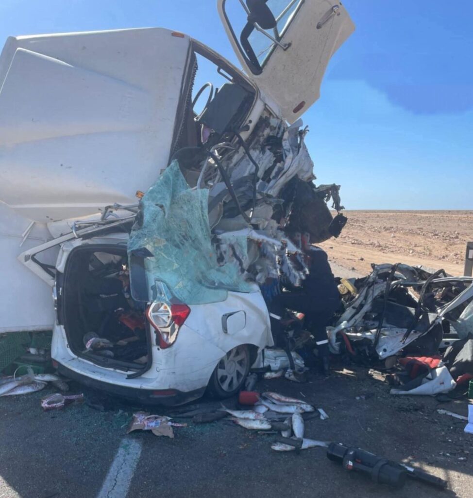 لقي أربعة أشخاص مصرعهم صباح اليوم على بعد نحو 120 كيلومتراً جنوب مدينة بوجدور، جراء حادث سير خطير نجم عن اصطدام مباشر بين سيارة خفيفة وشاحنة. كما تم نقل سائق الشاحنة إلى المستشفى بعد تعرضه لإصابات متفاوتة الخطورة.