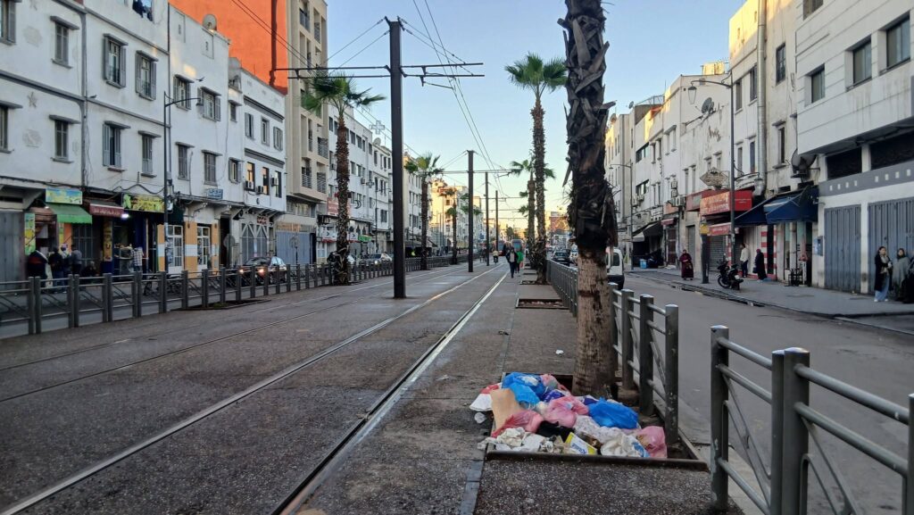 تراكم الأزبال على طول خط الترامواي يثير استياء الساكنة.