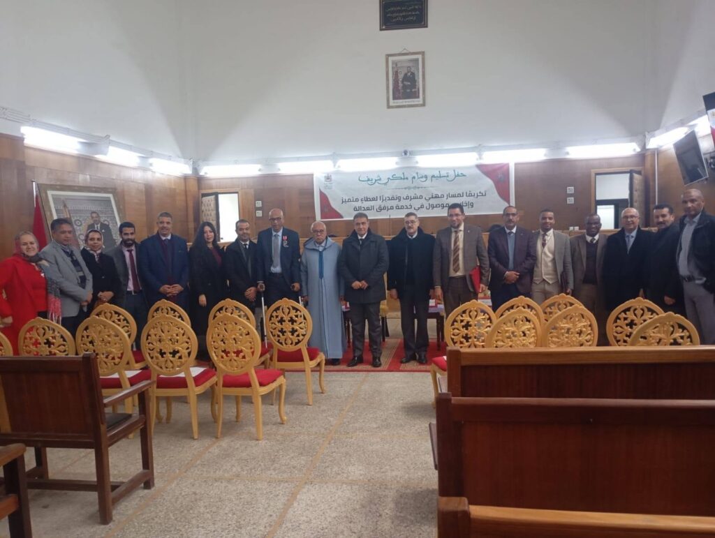 ويعد هذا التوشيح اعترافًا رسميًا بعطاءات المحتفى به، الذي عرف بين زملائه بالانضباط وحسن السلوك والتفاني في أداء الواجب المهني، ومساهمته الفعالة في ضمان حسن سير المرفق القضائي وخدمة المرتفقين في احترام تام لأخلاقيات المهنة.