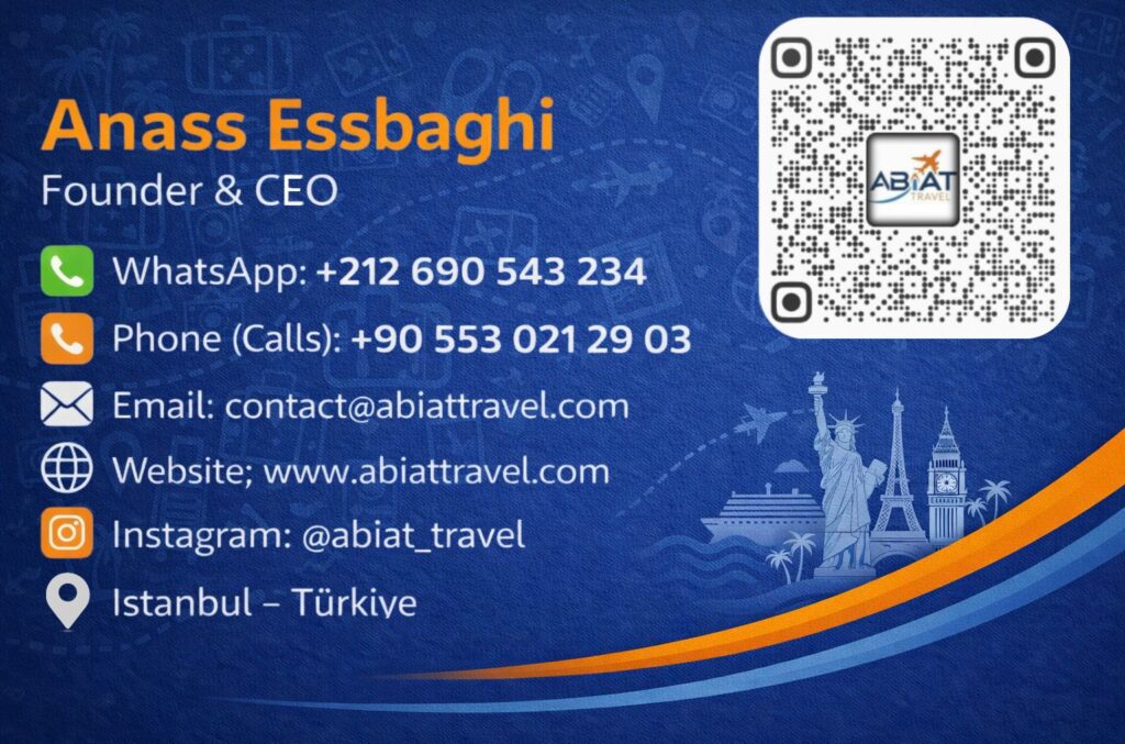 سنوات من الخبرة فتنظيم الرحلات وخدمة المغاربة داخل تركيا وخارجها، بخدمات احترافية ومرافقة شخصية من أول خطوة حتى توصل لوجهتك وأنت مرتاح البال.